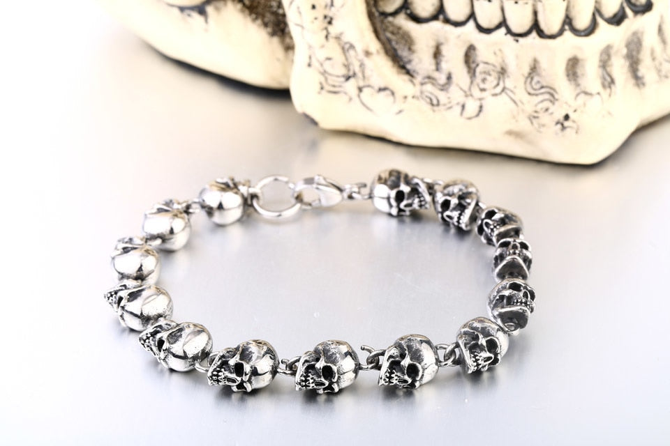 Wear this easy to match with diverse apparel Skull Bracelet Punk. All our bracelets are made from the highest-quality materials including top grade stainless steel for comfort and durability. This bracelet features a unique design with interesting patterns to suit the true rogue man! This piece is hand-crafted with quality workmanship and unusual design. It is a statement piece of jewelry to match your unique personality!