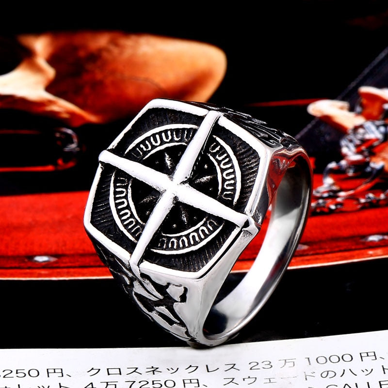 Express your style with statement pieces from our collection of men's rings like Pirate Compass Ring. Each ring is cast from high-quality 316L stainless steel into the various shapes depending on the ring. The unique, intricate design allows the wearer to express themselves and their personality whilst maintaining the quality of the jewelry. Ideal for everyday wear and a variety of occasions. Stand out from the crowd with this ring.
